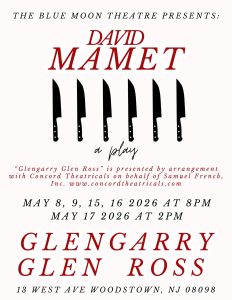 Next at The Blue Moon Theatre is auditions for Glengarry Glenn Ross. Director Mike Russell is looking for a cast of male presenting actors to bring David Mamet’s classic to life.